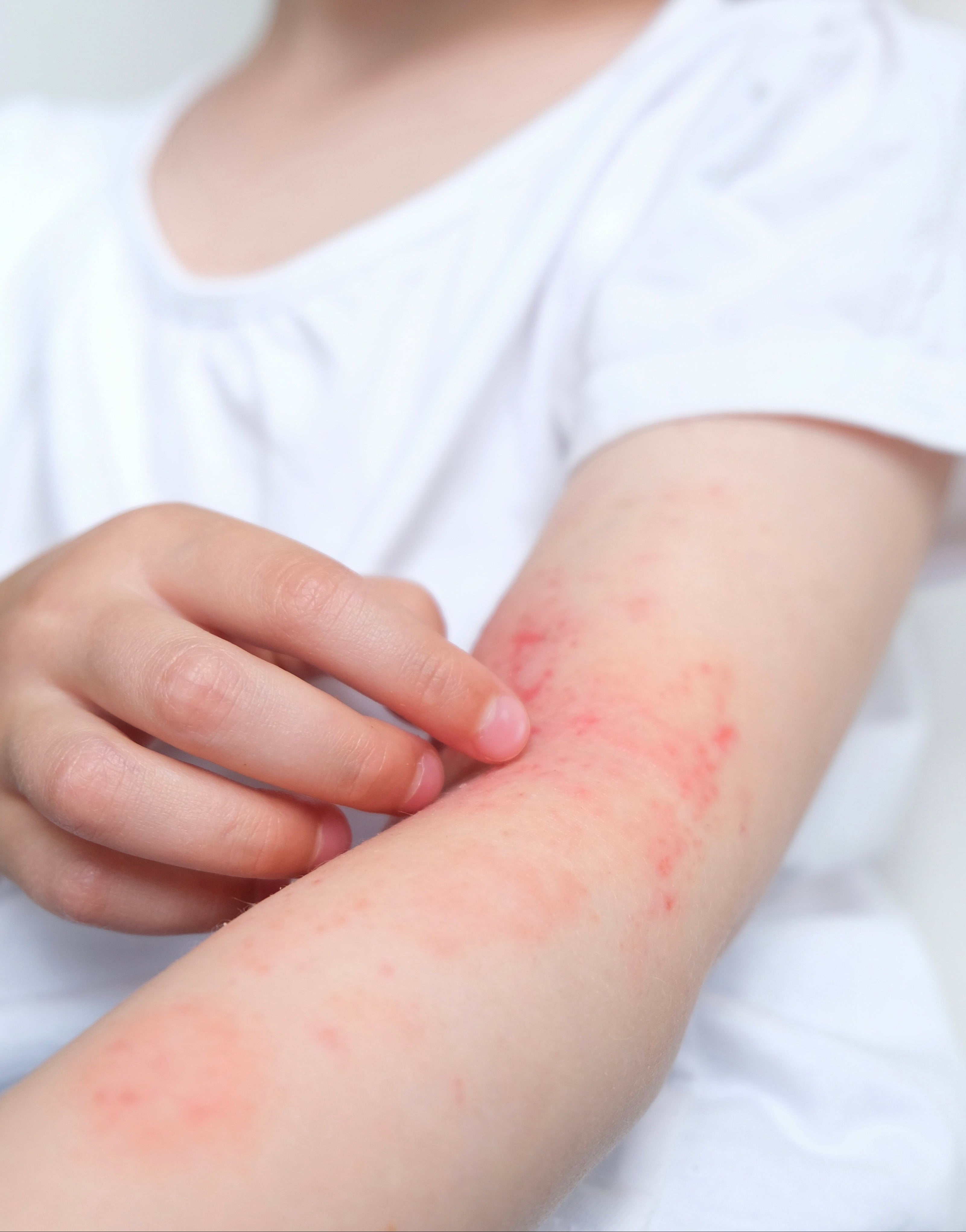 A savoir : L’eczéma atopique est une maladie inflammatoire chronique de la peau, non contagieuse, et évoluant par poussées.